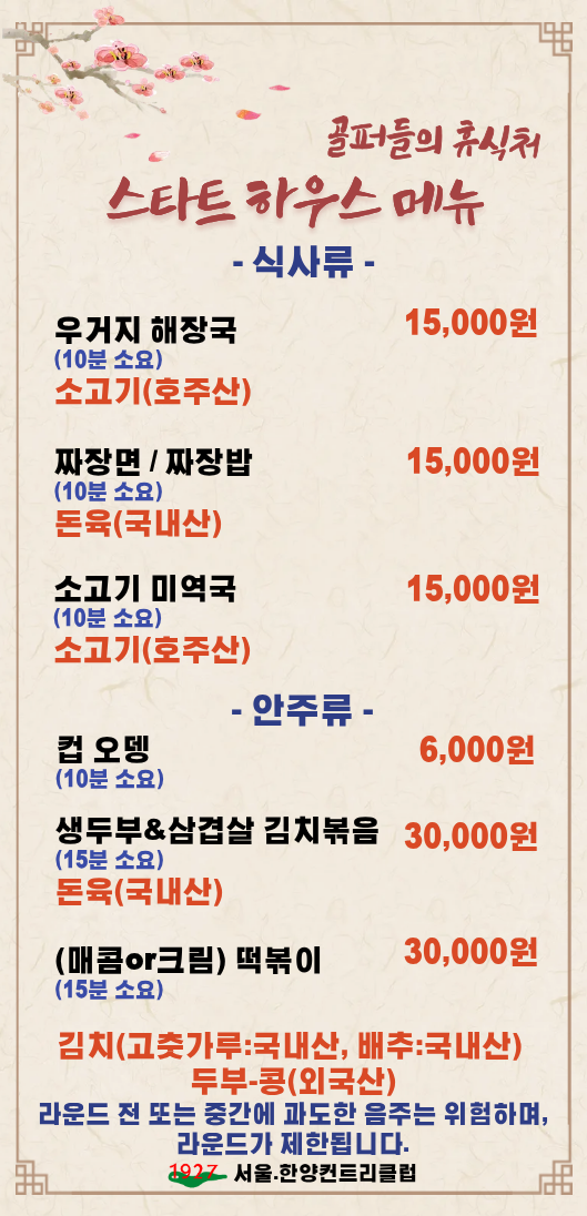 품격있는 요리, 최상의 서비스로 한분 한분 정성으로 모시겠습니다. 클럽하우스 2층에 위치한 대식당에서는 하루의 여유로운 휴식이 되기를 바라는 마음으로 집밥같은 정성으로 준비한 식사를 맛보실 수 있습니다. 또한 계절별로 특선메뉴를 준비해 새로운 즐거움을 선사해 드릴 것입니다.